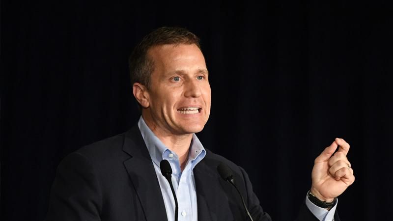 Eric Greitens speaks at Mike Pence speaks rally in Chesterfield, Missouri in 2016. (Shutterstock.com)