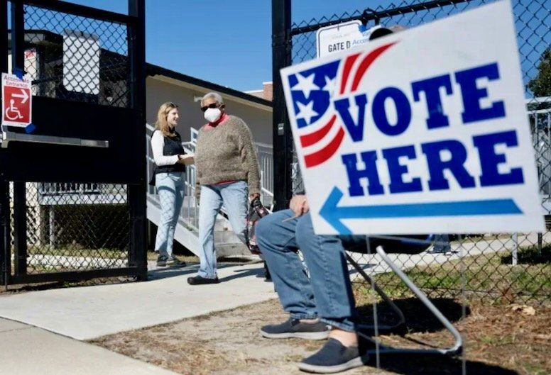 A woman departs a polling location at Stiles Point Elementary in Charleston, South Carolina during the Democratic primary (Jim WATSON)