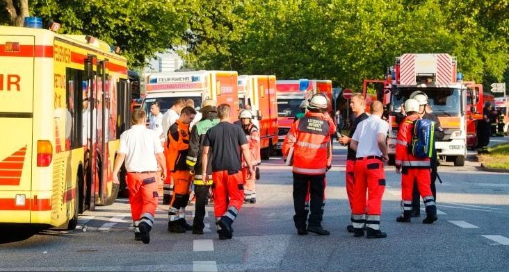 AFP/DPA/AFP - Firefighters and ambulances stand outside a WWII bunker that went on fire on August 4, 2015 in Hamburg amid an explosion that wounded 21 people