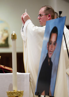 Fr. Sean Connor conducts a mass to celebrate the life of Martin Richard, of Dorchester, one of the victims of the April 15 bombing at the Boston Marathon.