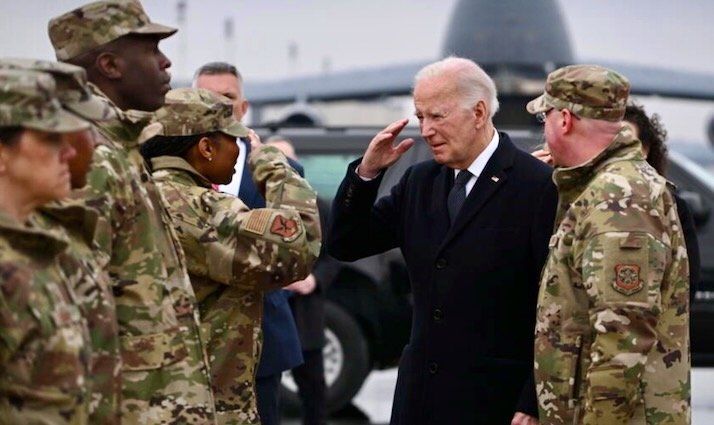 President Joe Biden greets military personnel ahead of the 'dignified transfer' ceremony for three slain US soldiers © Roberto SCHMIDT / AFP