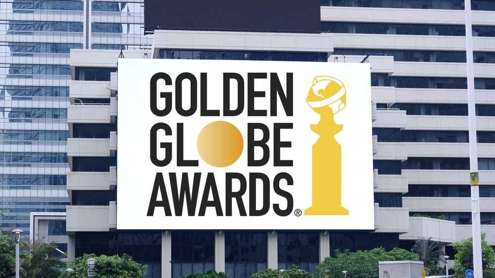 The Golden Globe Awards logo on a billboard. (Photo credit: Poetra.RH / Shutterstock)