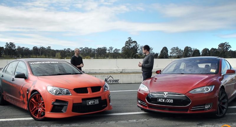 The V8, fuel-guzzling, rev-heads, who are supposedly worried that electric cars mean they will be left driving around golf buggies, should first check out this drag race between a Tesla and a Holden V8 Supercar.