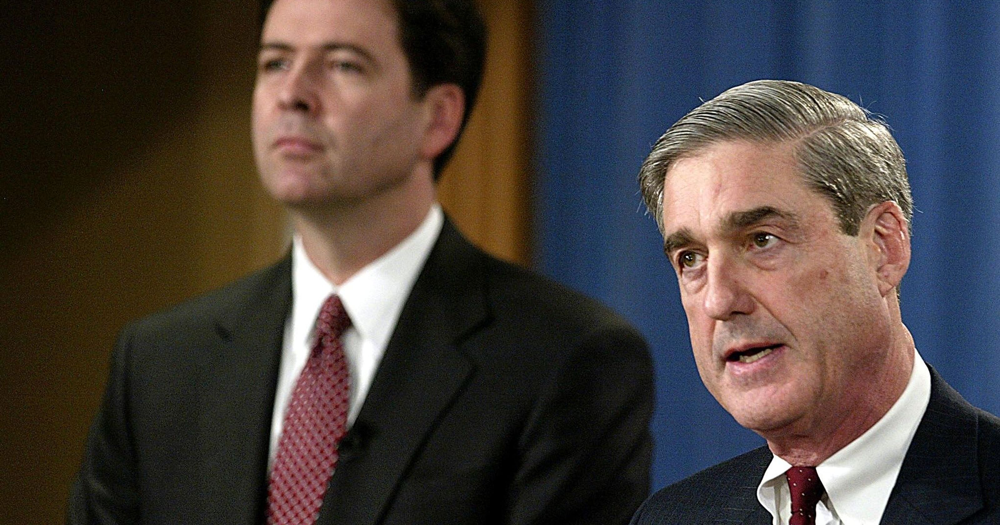 Former FBI director James Comey (left) and special counsel Robert Mueller (right). Image via Stephen Jaffe, AFP.