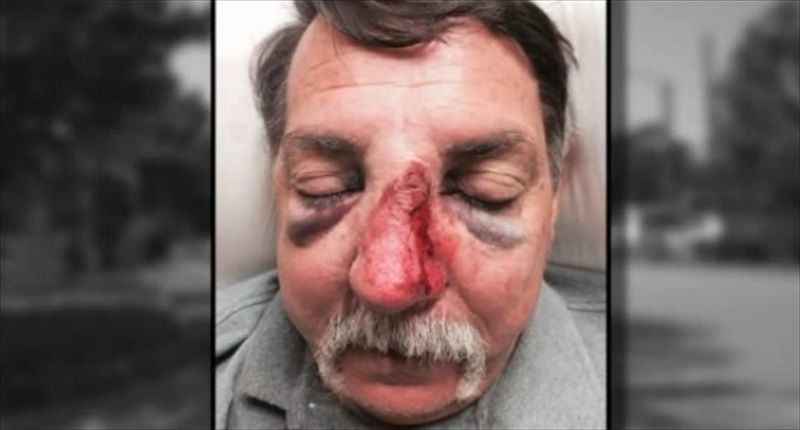 The victim suffered a broken nose and sinus cavity, along with broken teeth, at which point his wife said she tried to defend him. The ensuing fight was broken up by witnesses.