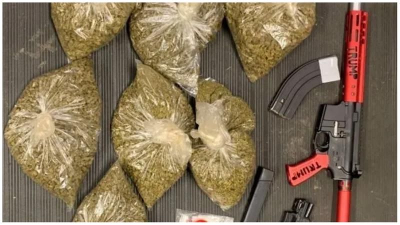 “In his vehicle, officers located more than 8 pounds of processed marijuana, as well as an assault style rifle and handgun,” police said in a Facebook post. “Titus is a convicted felon prohibited from possessing firearms.”