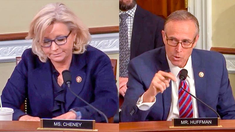 At that point, Rep. Huffman interrupted, accusing Cheney of "badly mischaracterizing" the Green New Deal.