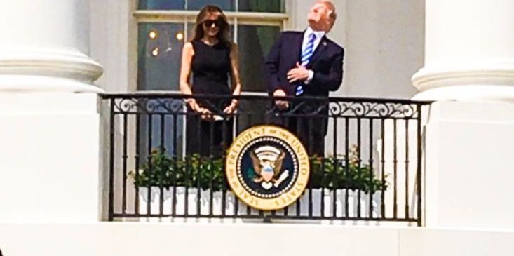 President Donald Trump stares directly into the eclipse (Photo via Ted Mann).