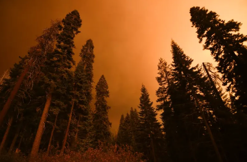 Flames are creeping closer to the majestic General Sherman and other giant sequoias, as man-made climate change worsens California's fearsome fire season.
