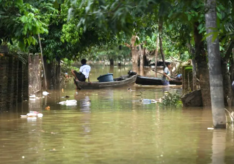 Footage from Rakhine state, which was ravaged in May by Cyclone Mocha, showed large areas of villages and farmland submerged by murky, yellow-brown waters.