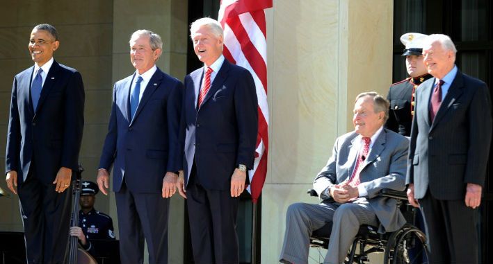 Former presidents Barack Obama, George W. Bush, Bill Clinton, George H. W. Bush and Jimmy Carter
