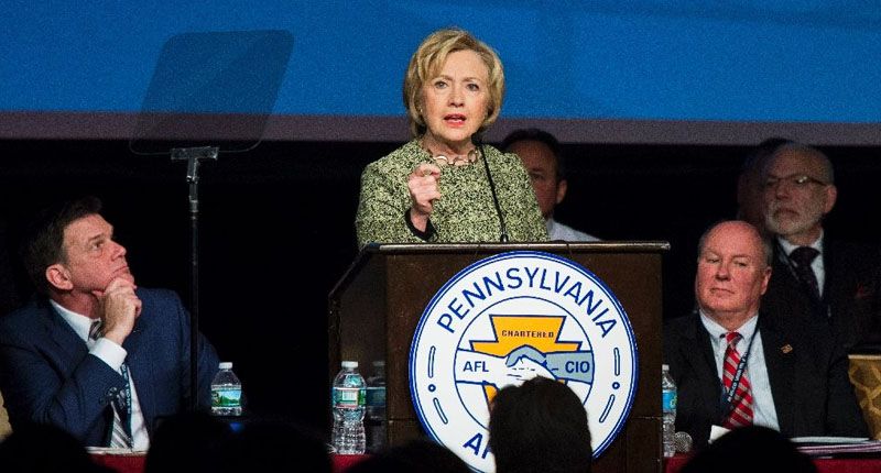 Democratic presidential candidate Hillary Clinton speaks at a labor organization gathering, April 6, 2016 in Philadelphia, Pennsylvania (AFP Photo/Dominick Reuter)