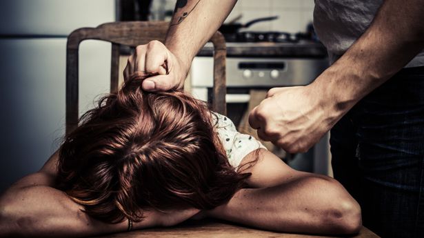 [Man physically abusing his wife on Shutterstock]