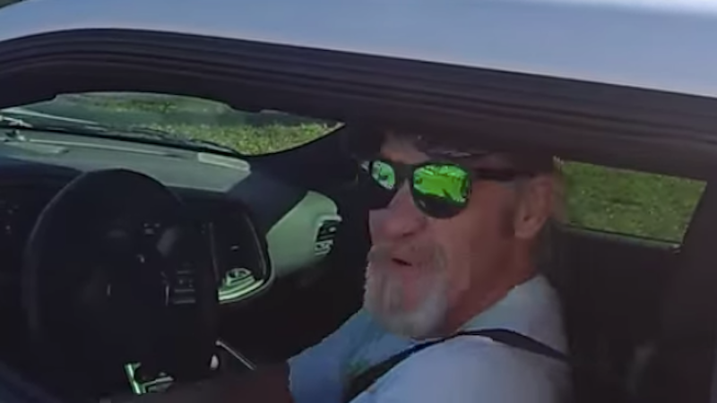 The man also claimed that he had just gotten the car and was trying to get it "out of sport mode," and he then claimed he had sped up to move ahead of another driver.