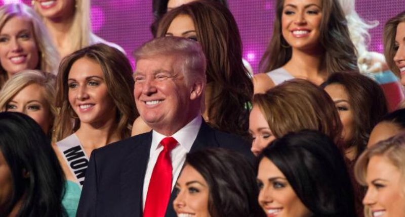 Donald Trump poses with Miss Universe contestants in 2013. Image via AFP/Darren Decker.
