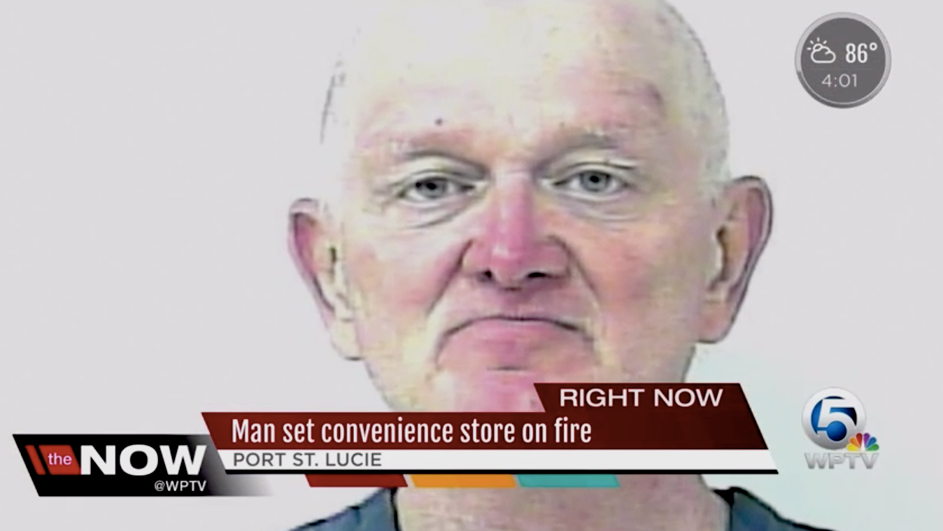“When the deputies arrived, they noticed the dumpster had been rolled in front of the doors and the contents were lit on fire,” said St. Lucie County Sheriff Ken J. Mascara in a statement. “Upon seeing our deputies, the man put his hands behind his back and said ‘take me away.’”