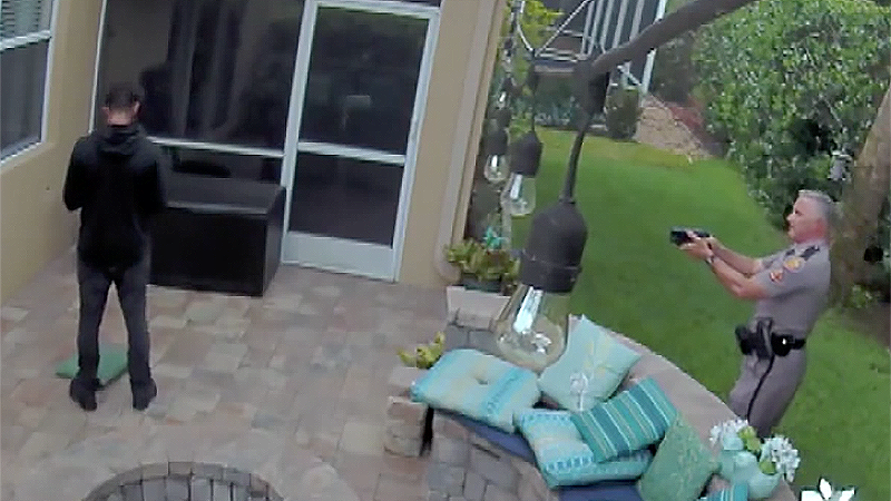 According to CBS12, 16-year-old Jack Rodeman was standing on the back porch of his girlfriend's home. He was reaching for his phone to text her that he was outside so she could let him in. It was known that he was going to be there. He has permission to be.