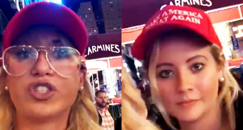 Two Trump supporters stand outside Carmine's in New York City (Screen cap).