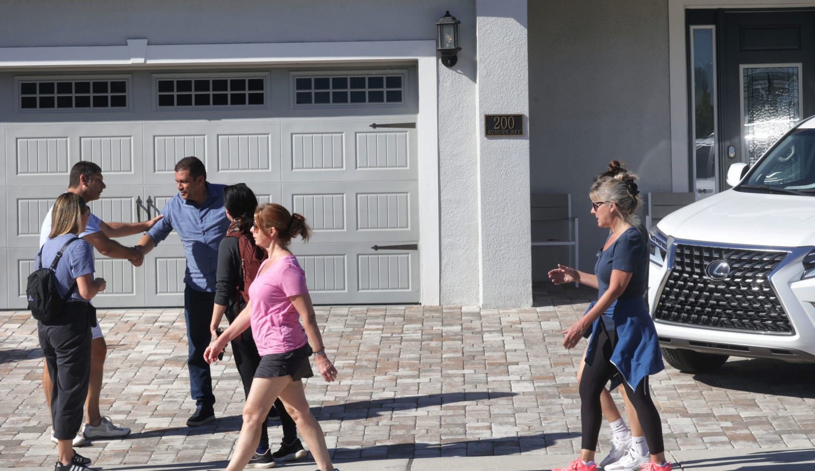 Supporters of former Brazil president Jair Bolsonaro talk with a security guard at the Kissimmee, Florida, home where he is staying while he visiits Central Florida, Monday, Jan. 9, 2023. - Joe Burbank/Orlando Sentinel/TNS