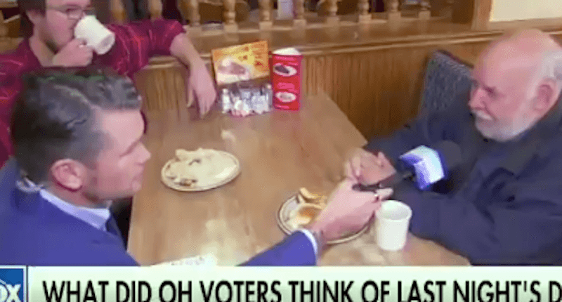 Hegseth ended the interview by questioning whether that was a wise campaign strategy, and then turned to a server who was wrapping up an overnight shift and asked their thoughts on the debate.