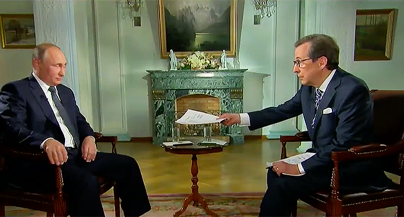 Chris Wallace tries to hand Vlaidmir Putin indictments (Photo: Screen capture)