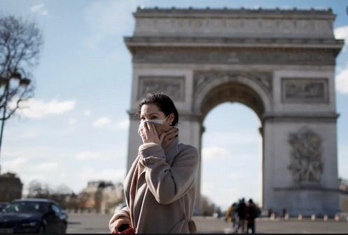 Woman wears face mask against coronavirus at the Arc de Triomphe Paris AFP