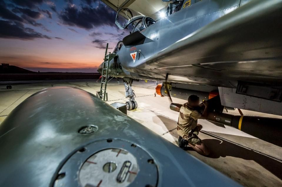 Image: This picture released on November 9, 2015 by French Defense Audiovisual Communication and Production Unit (ECPAD) shows a French army Rafale fighter before taking off from a base in The Gulf for Syria as part of France's Operation Chammal (AFP Photo/)