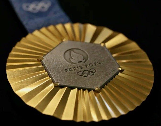 The medals for the 2024 Paris Olympics feature a piece of iron from the original Eiffel Tower in the centre (Thomas SAMSON/AFP)