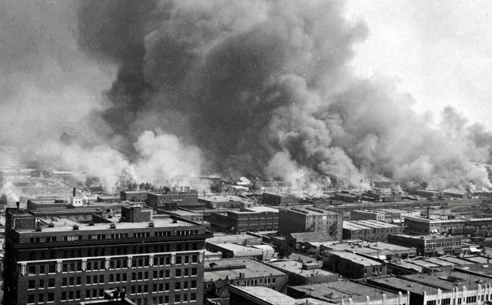 During the Tulsa race riots in 1921, black businesses and homes in the Greenwood District in Tulsa, Oklahoma, were destroyed at the hands of white residents.