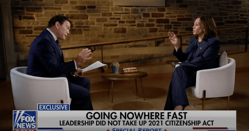 As soon as Vice President Kamala Harris' interview with Fox News host Bret Baier began, the two sparred on the topic of immigration — with Harris reminding Baier that the Biden administration fought for a comprehensive border security solution only for former President Donald Trump to work behind the scenes to kill it.