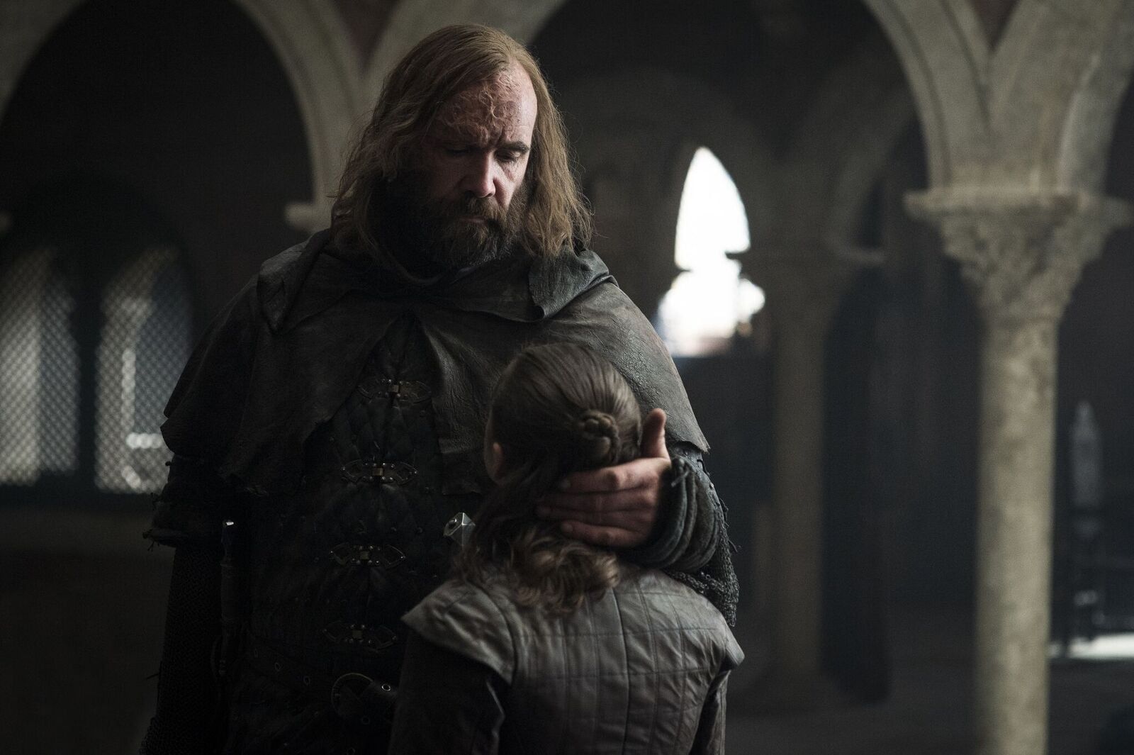 Meanwhile, before the flaming anarchy kicks in Arya enters King’s Landing with Sandor Clegane to finally cross Cersei off of her kill list. But in the heart of the Red Keep, Sandor turns Arya back and assures her that if she stays in the keep, which is crumbling around them, she’ll die. Amazingly she listens and thanks him as he heads to his fate: Cleganebowl.