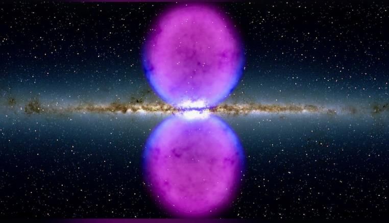 Thus a question researchers asked after the discovery of the bubbles: can we find a smoking gun tying them to our Galaxy’s supermassive black hole? Soon, tentative evidence did emerge: there was a hint, inside each bubble, of a thin gamma-ray jet pointing back towards the galactic centre.