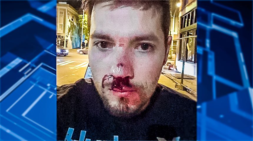 Patrick Dettling had his nose broken at a Seattle Pride event (screen grab)