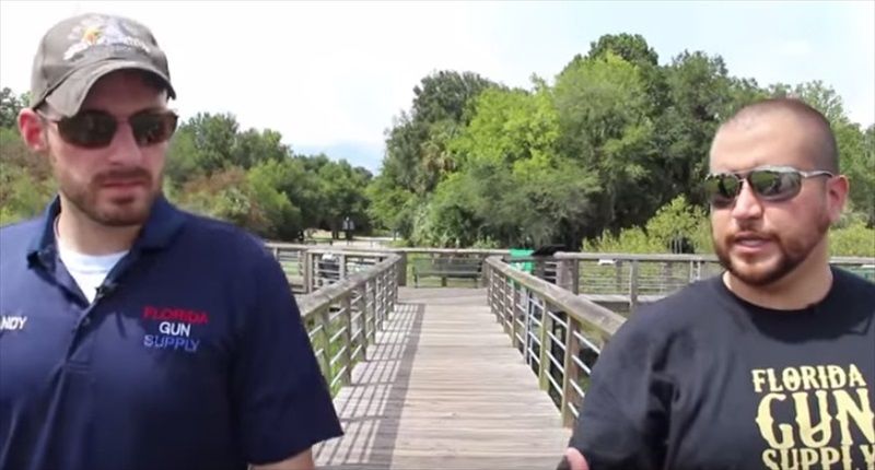 Florida Gun Supply owner Andy Hallinan (left) and George Zimmerman. [YouTube]