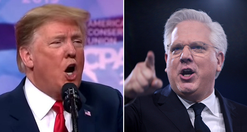 President Donald Trump speaks at CPAC 2019 (left, via screengrab) and Glenn Beck speaks at CPAC 2016 (right, via Wikimedia Commons).