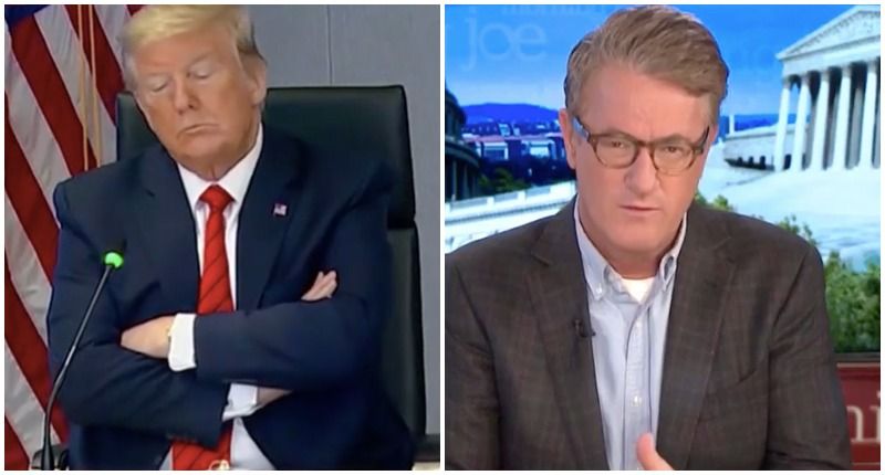 MSNBC's Joe Scarborough rolled video showing President Donald Trump apparently nodding off during a meeting of his coronavirus task force.