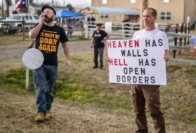 Another activist held a sign that read: "Heaven has walls, hell has open borders."