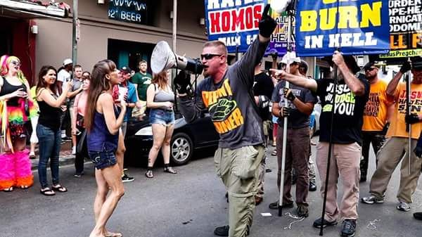 Portland-based far-right preacher Allen Puckett yelling at a counter-protester (image via Puckett's Facebook).