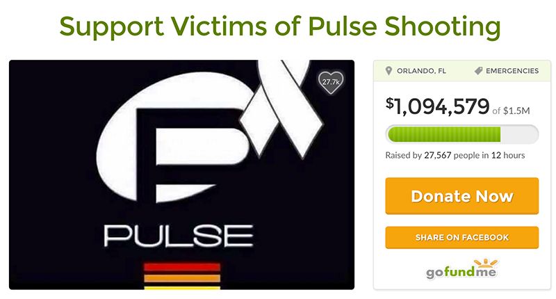 Not long after the Orlando shooting at the LGBT nightclub Pulse, Equality Florida put together a GoFundMe page for the victims families. It has raised more than $1 million in just 11 hours with more than 25,000 donors. The initial goal of just $25,000 was reached in less than an hour.