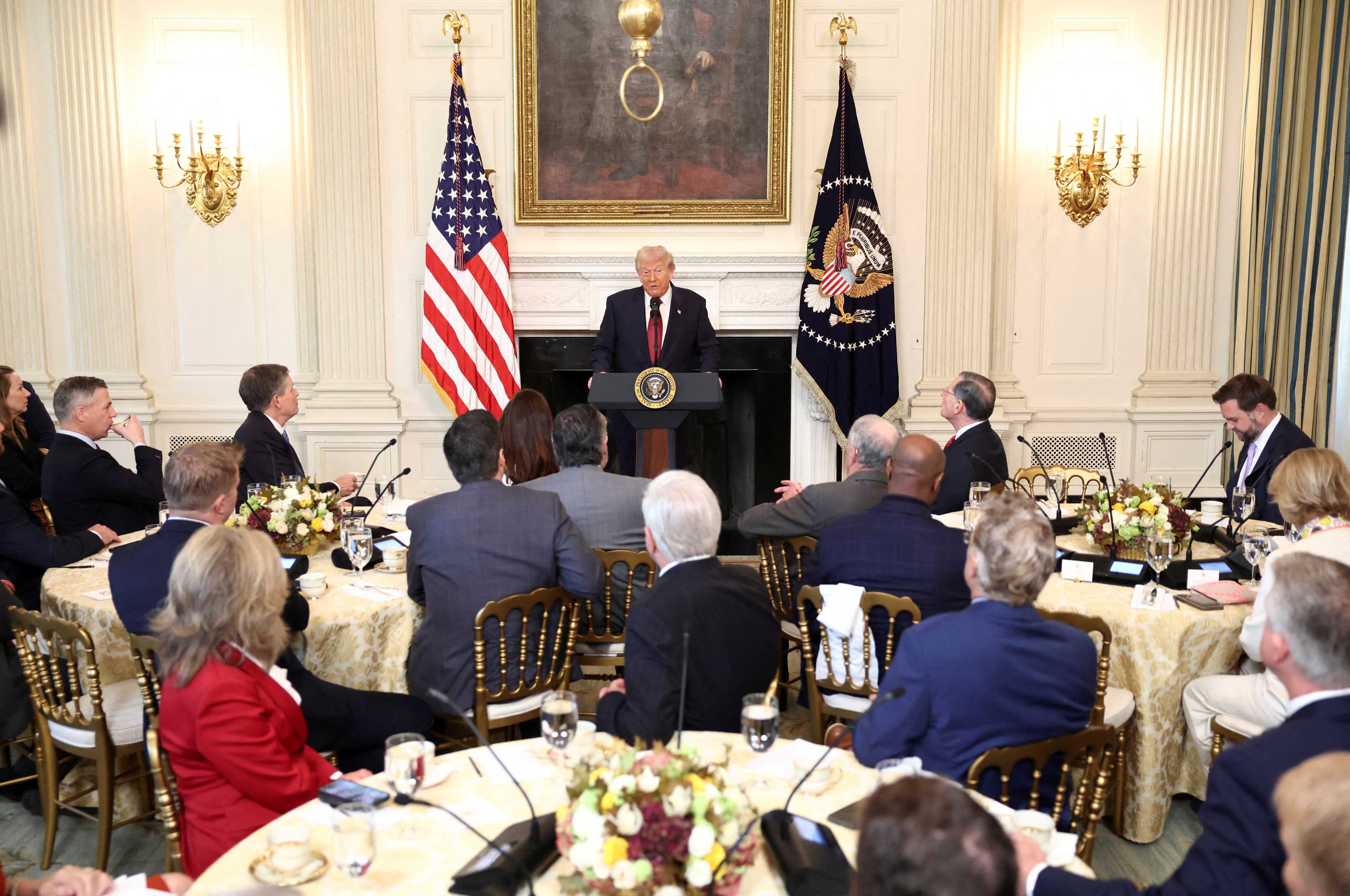 President Donald Trump speaks during a breakfast with Republican Senators at the White House in Washington, D.C. on Nov. 5, 2025. REUTERS/Kevin Lamarque