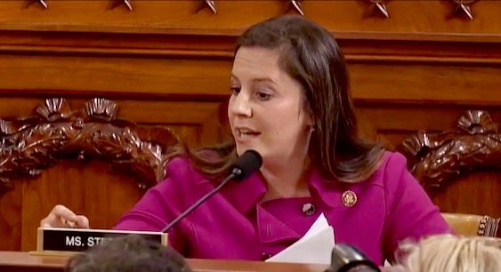 Congresswoman Stefanik last week had tried to disrupt the impeachment hearings that featured three solid witnesses who delivered sworn testimony disastrous for President Trump and the GOP.