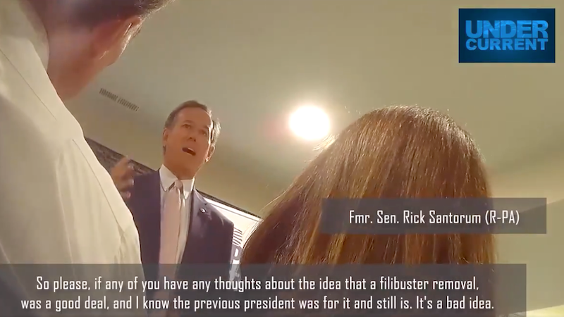 The video, first posted by Democratic activist Lauren Windsor and being circulated widely on Twitter, begins with former GOP Senator Rick Santorum, who is apparently speaking to a group of Republican activists.