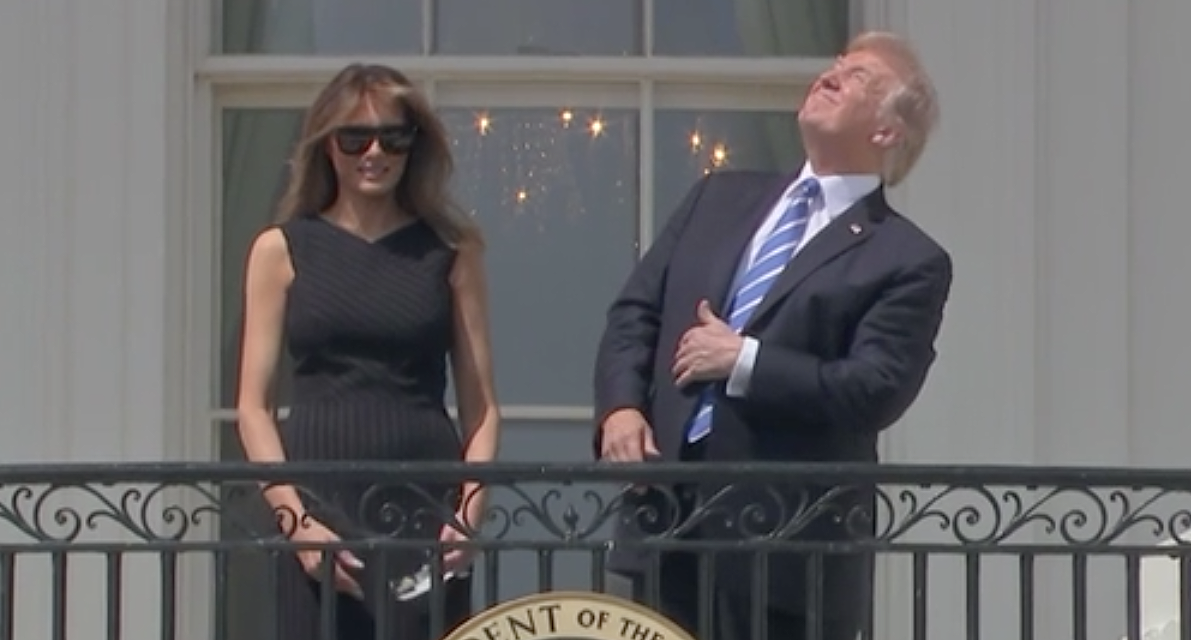 President Donald Trump stares at the sun with unprotected eyes during a 2017 solar eclipse.