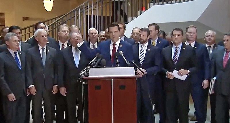 Rep. Matt Gaetz and House Republicans prior to SCIF stunt (Photo: Screen capture)