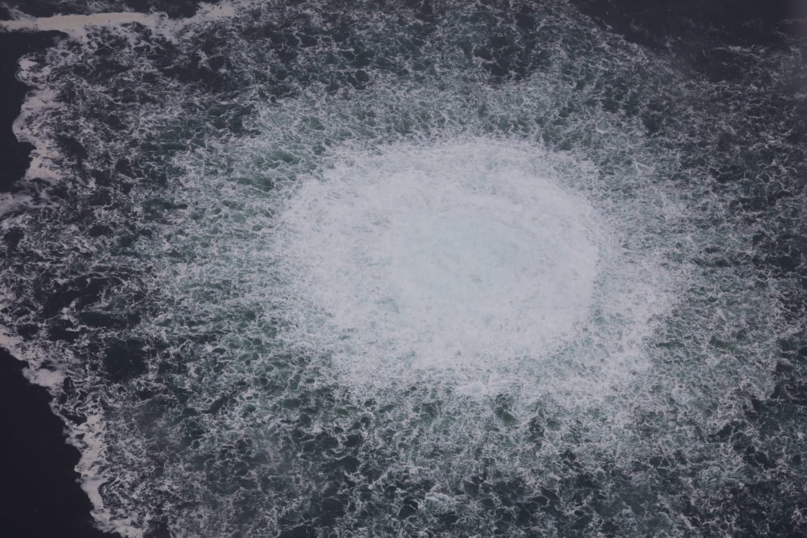The Nord Stream 1 gas leak in the Baltic Sea, photographed from a Swedish Coast Guard aircraft. Swedish Coast Guard/dpa