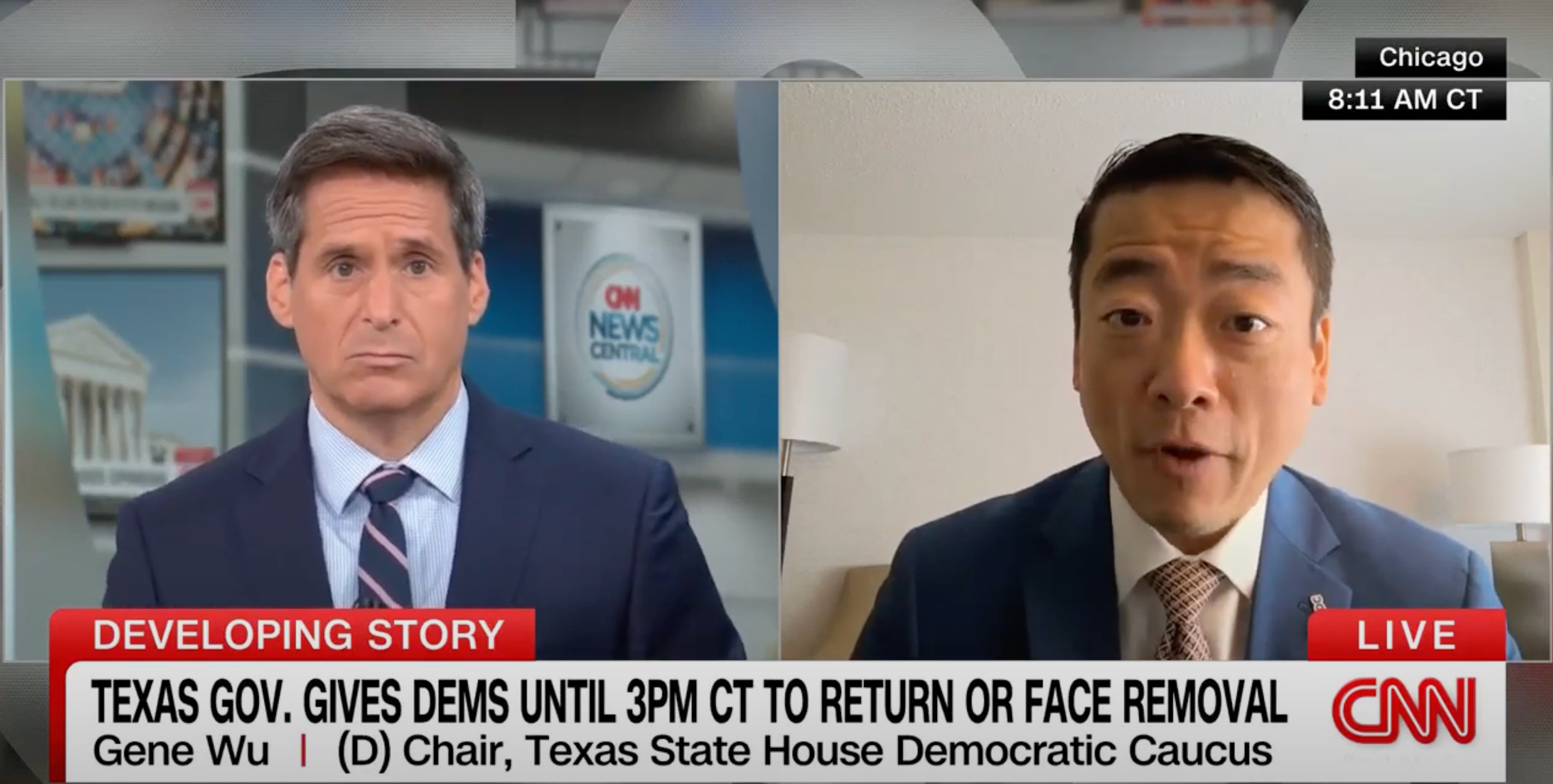 CNN's John Berman and Rep. Gene Wu (D), chair of the Texas State House Democratic Caucus, (CNN screenshot)