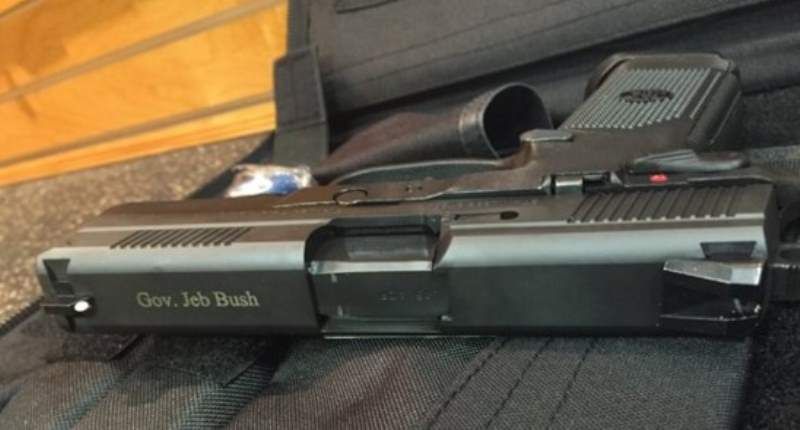 The gun's origins came shortly after the former Florida governor was jeered online after he posted a picture of it with his name engraved, alongside the caption, "America," as seen below: