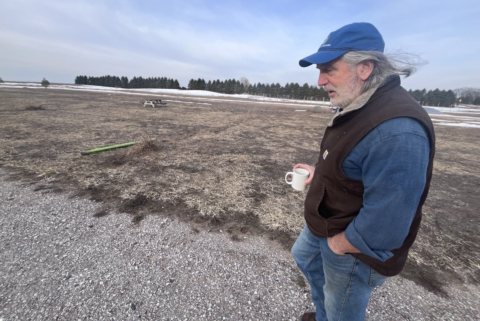 Jim Lively has a local food market just minutes from the Sleeping Bear Dunes National Lakeshore in northern Michigan. He’s waiting for the federal money he was promised so he can put solar on the roof and offset the costs of opening up a campsite for RVs in this field. Izzy Ross / Grist