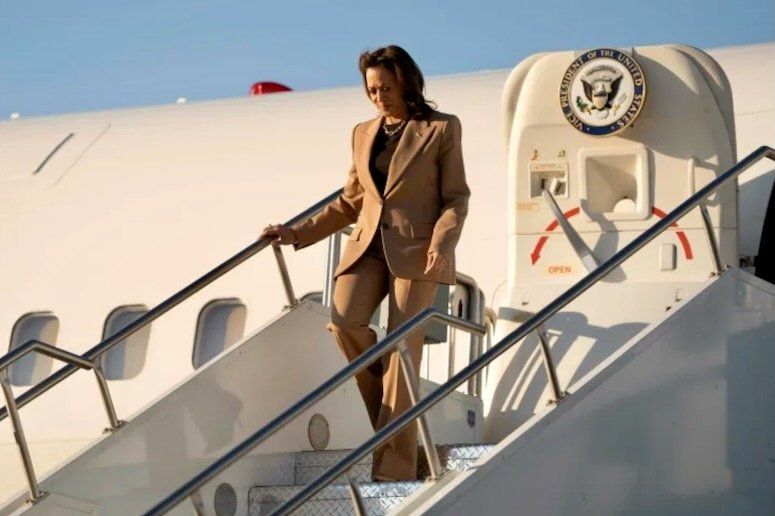 U.S. Vice President and Democratic presidential candidate Kamala Harris steps off Air Force Two as she arrives in Phoenix, Arizona (Rebecca NOBLE/AFP)