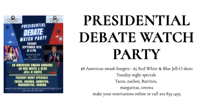 In the more upscale Dupont Circle neighborhood, The Admiral is serving up partisan "blue wave" and "red state" shots. And just down the street at Madhatter, they’ll be playing debate bingo while serving up red, white and blue shots for $5.